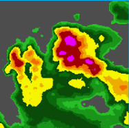 In this image areas of precipitation are colored from lightest precipitation to highest precipitation, this progression is as follows: green, yellow, orange, red and pink. The darker the shade in each color the higher the precipitation.