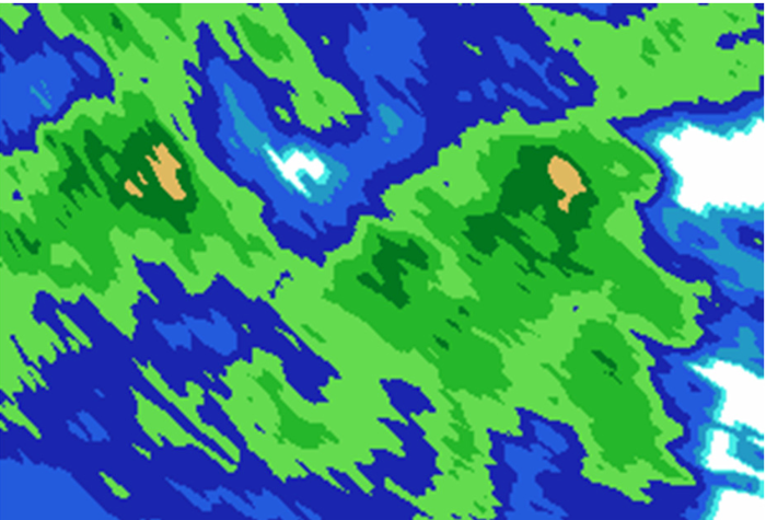 The desired outputs are accurate precipitation maps of the affected areas, below is an example of a desired precipitation map.